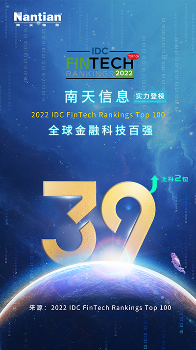 2022 IDC FinTech Rankings Top100 (全球金融科技排行榜)于美国东部时间9月12日正式揭晓,腾博tengbo9885官网信息再度实力登榜全球金融科技百强,位列第39位,较去年提升2位。