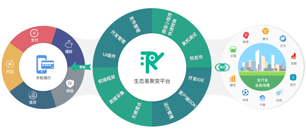 µ±¿ª·¢ÕßÔÚÉú̬Ò×¾Û±äÆ½Ì¨¿ª·¢ÁËÒ»¿îÇáÓ¦Óã¨Ð¡³ÌÐò£©£¬¾Í¿ÉÒÔÔÚAndroid¡¢IOSµÈ¶ËÉÏÔËÐС£Ö§³Ö¿ìËÙǨáãÖÁ¶à¿îÓµÓÐС³ÌÐòÄÜÁ¦µÄAppÉÏ£¬ÈçÌÚѶϵ¡¢°¢Àïϵ¡¢°Ù¶Èϵ¡¢Í·ÌõϵµÈµÈ¡£ÊµÏÖÒ»´Î¿ª·¢£¬¶à¶ËÔËÐУ¬¿ìËÙǨáã¡£