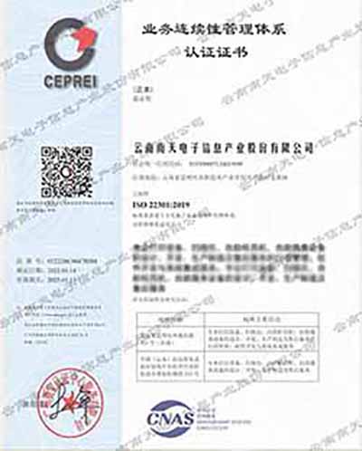 2021年6月,公司组织了营业一连性管理系统知识和内审员培训,并通过访谈、现场调研正式启动营业一连性管理系统建设事情。凭证ISO 22301:2019《清静与韧性 营业一连性管理系统要求》,经太过析策划、系统文件编写与评审、危害识别与评价、营业影响剖析、现场指导、线上向导、实验运行、线上审核、现场审核等阶段,顺遂通过营业一连性管理系统认证。