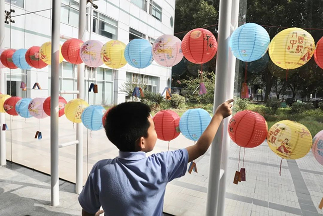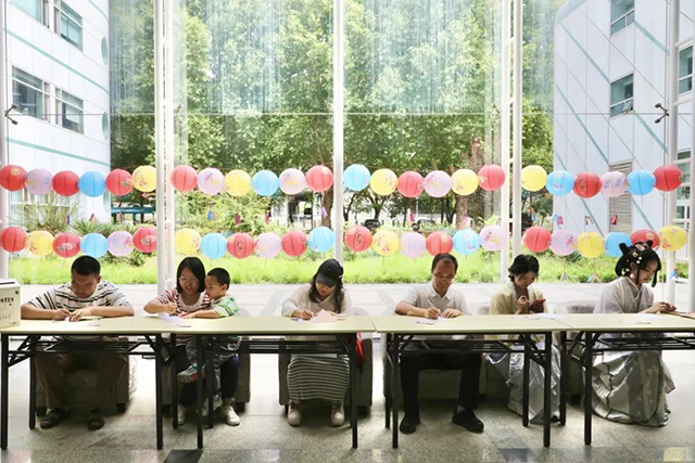 画团扇、做花灯、猜字谜……一项项有趣的体验运动,让各人陶醉在喜悦的气氛中。一面面团扇泛起皎皎明月、灵动玉兔;一盏盏花灯萌趣可爱,惟妙惟肖;身着汉服的小姐姐、古色古香的花灯安排,让人犹如穿越到了大唐盛世。