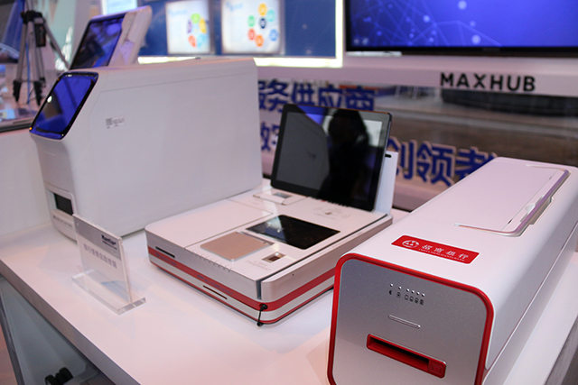 腾博tengbo9885官网便携式发卡箱、智感桌面终端等产品亮相展会,向公众展示了腾博tengbo9885官网的金融行业无纸化办公、移动办公等软硬件整体解决计划