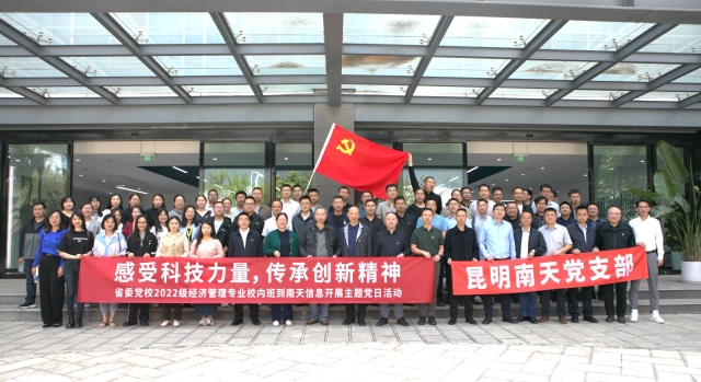 3月31日,中共云南省委党校(云南行政学院)研究生部2022级经济管理专业校内班走进腾博tengbo9885官网信息,开展“感受科技力量,传承立异精神”主题党日运动。省委党校2022级经济管理专业研究生班班主任李彩霞,昆明腾博tengbo9885官网公司党支部书记、总司理谭楚,昆明腾博tengbo9885官网公司谋划班子及党员代表等加入运动。