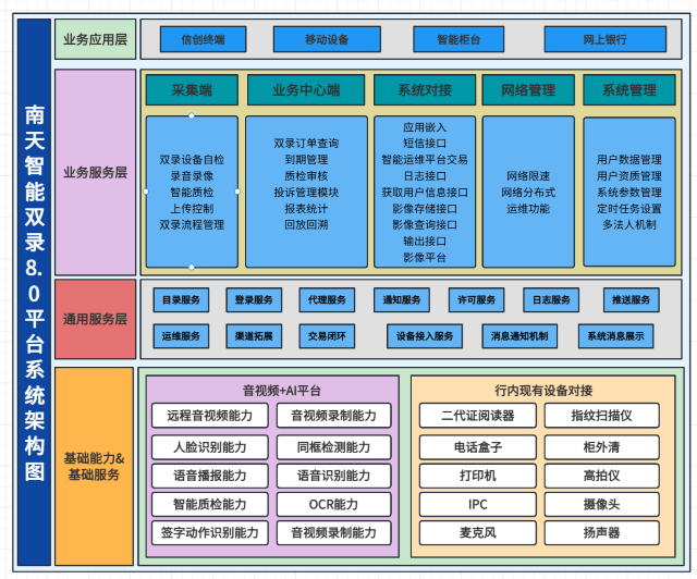 腾博tengbo9885官网信息已在双录营业场景中耕作多年,富有履历的专业团队提供全天候服务,能应对客户种种现实需求,为客户提供高质量服务 。现在,平台已在海内多家银行及金融机构实验应用,并随着政策迭代和客户生长需求一直立异优化,为金融行业生意合规筑牢智慧防地 。