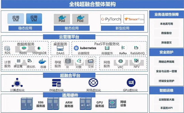 支持虚拟机、容器化安排,兼容稳态应用、敏态应用及云原生应用。